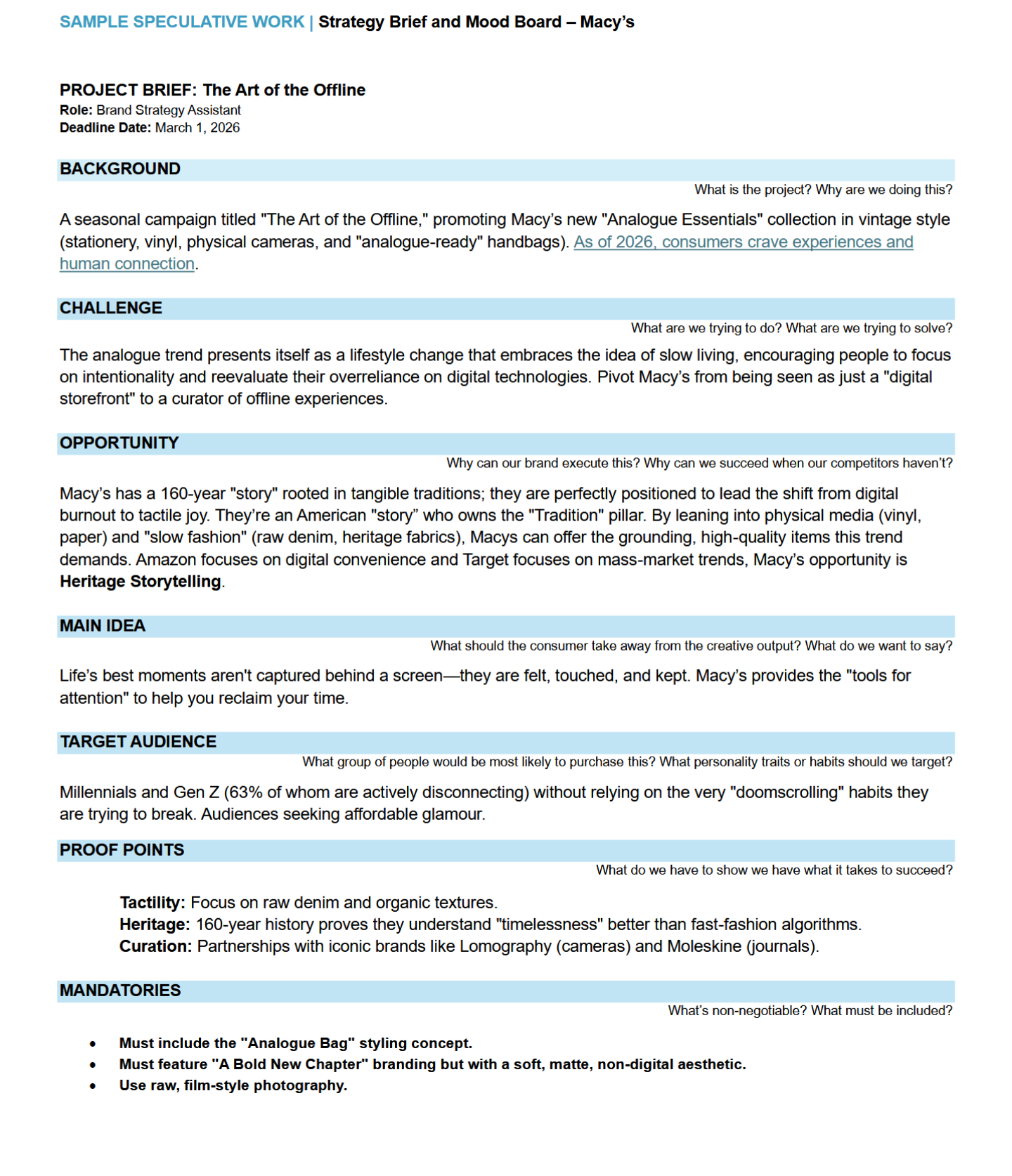Each of the following ad copy pieces are fictional and exist to demonstrate my versatile voice across different industries. Before crafting services and products for these conceptual brands, I make sure to ask myself a few questions: